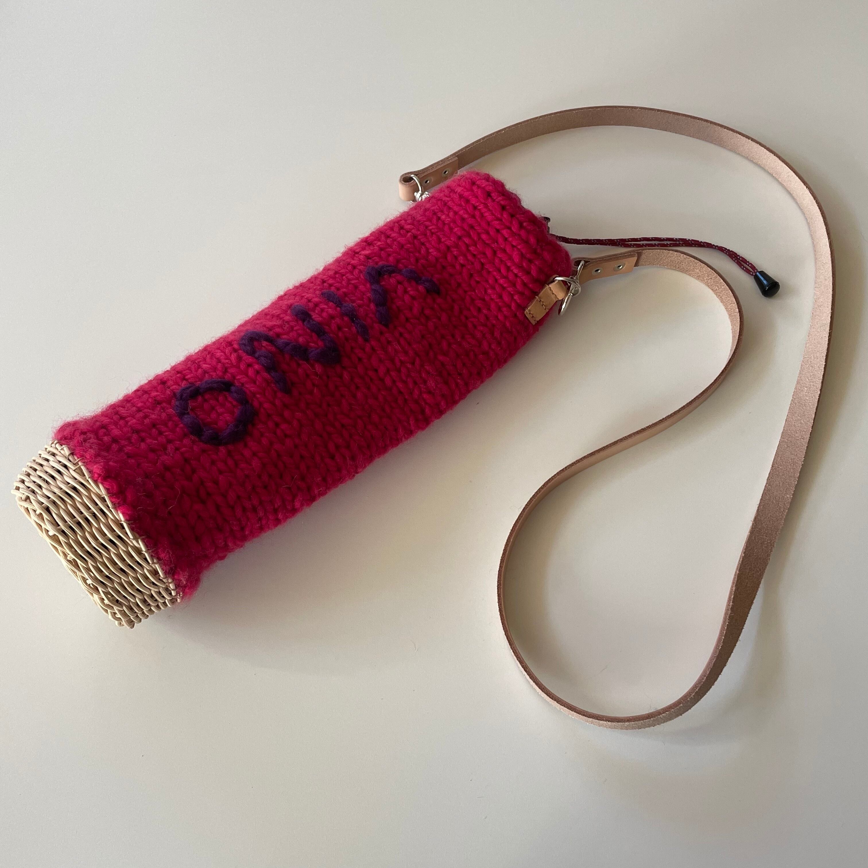 手編みワインバッグ イタリアピンク