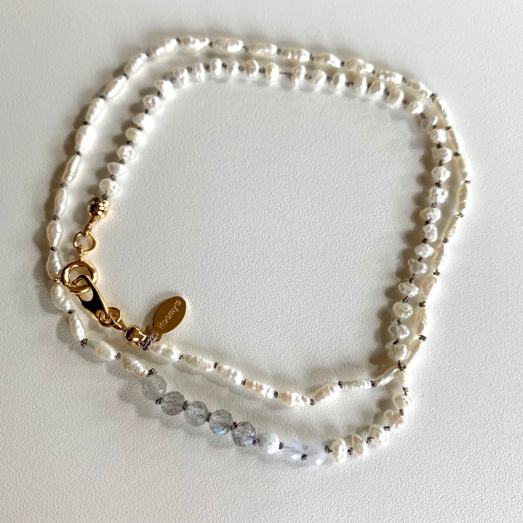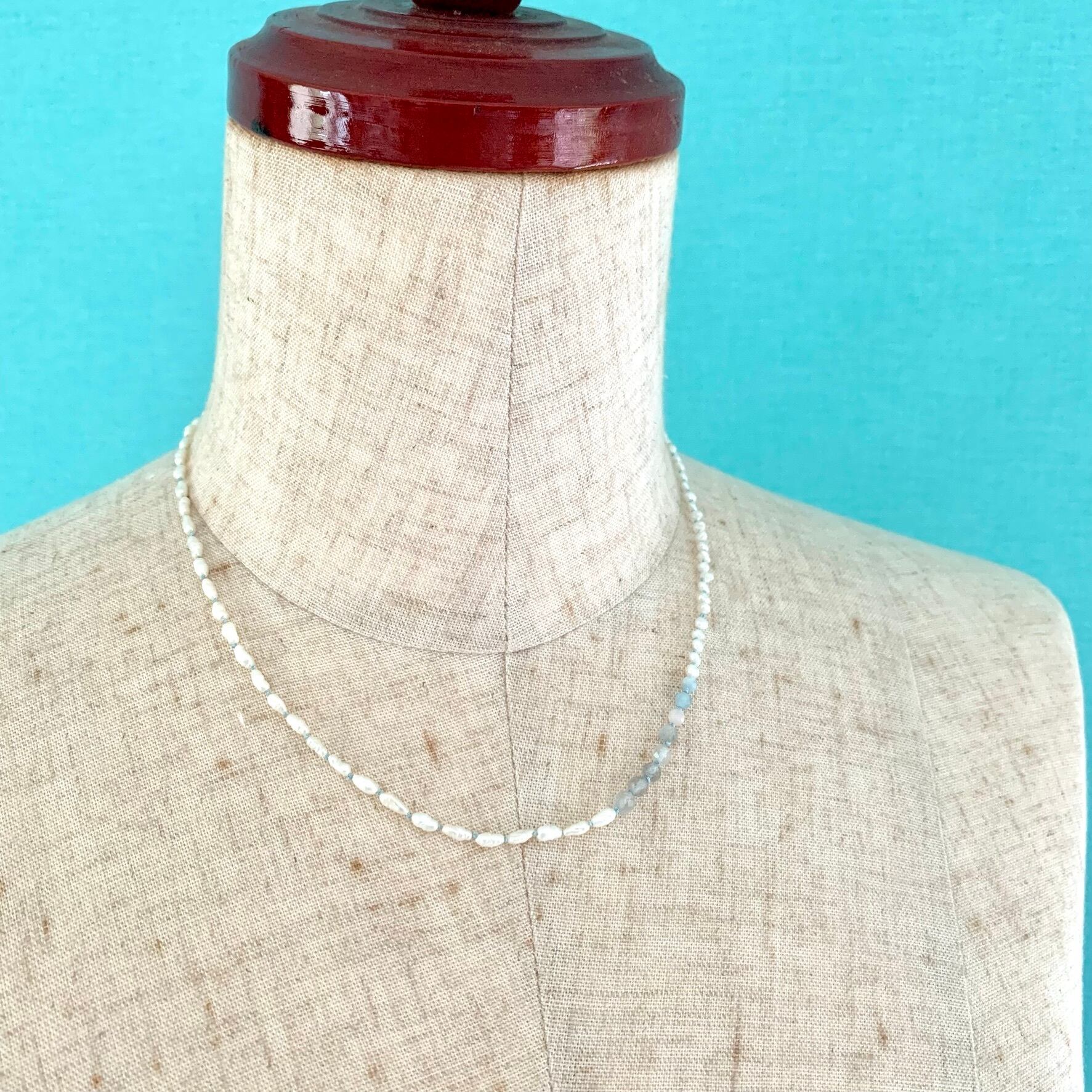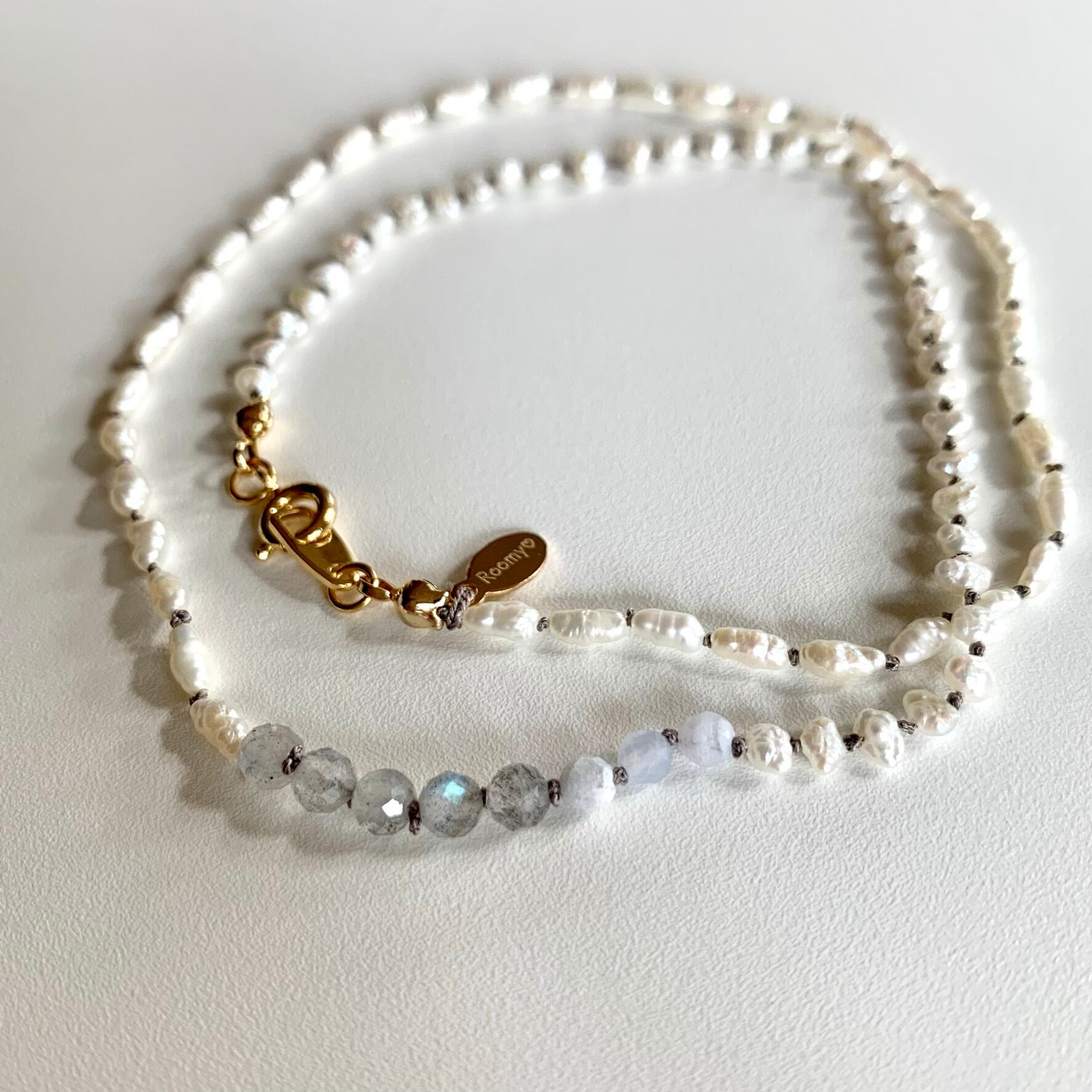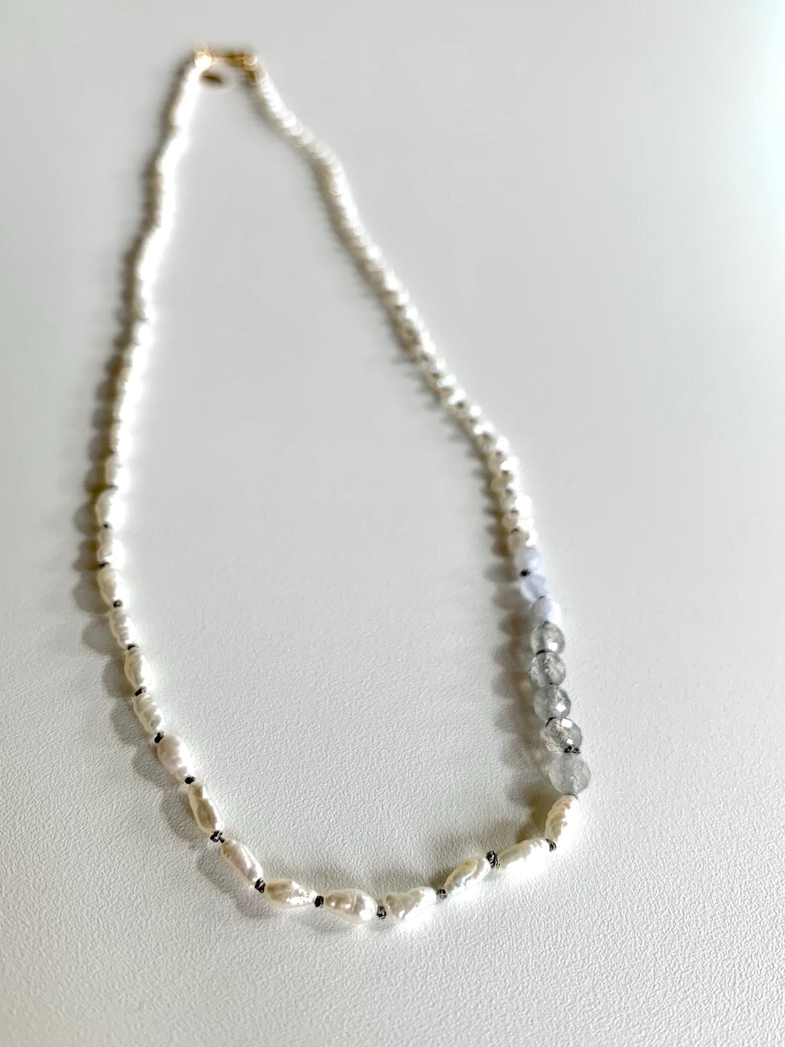 小粒の淡水パールとラブラドライトとベルリを結びました。