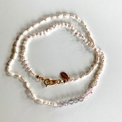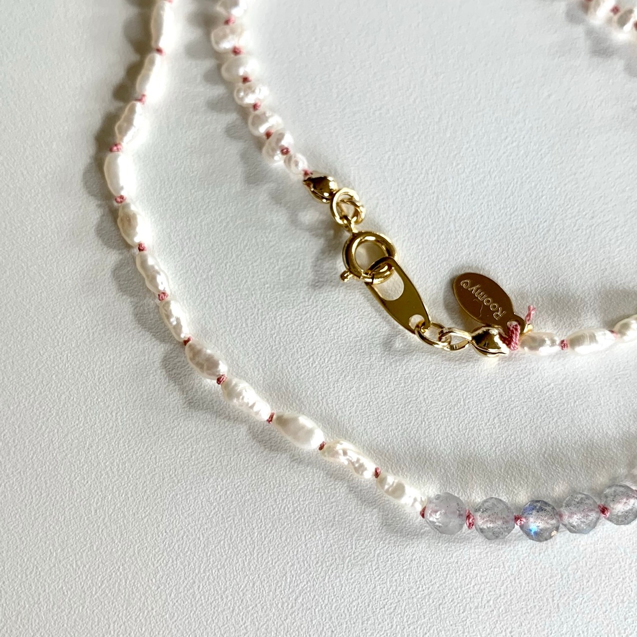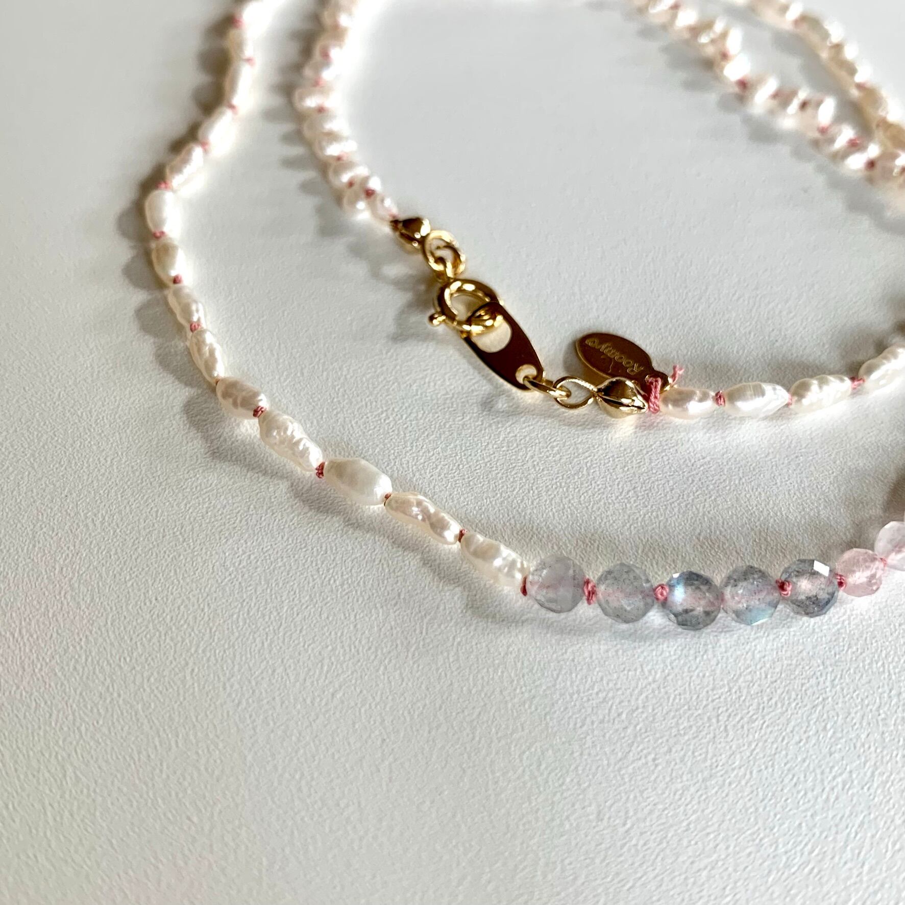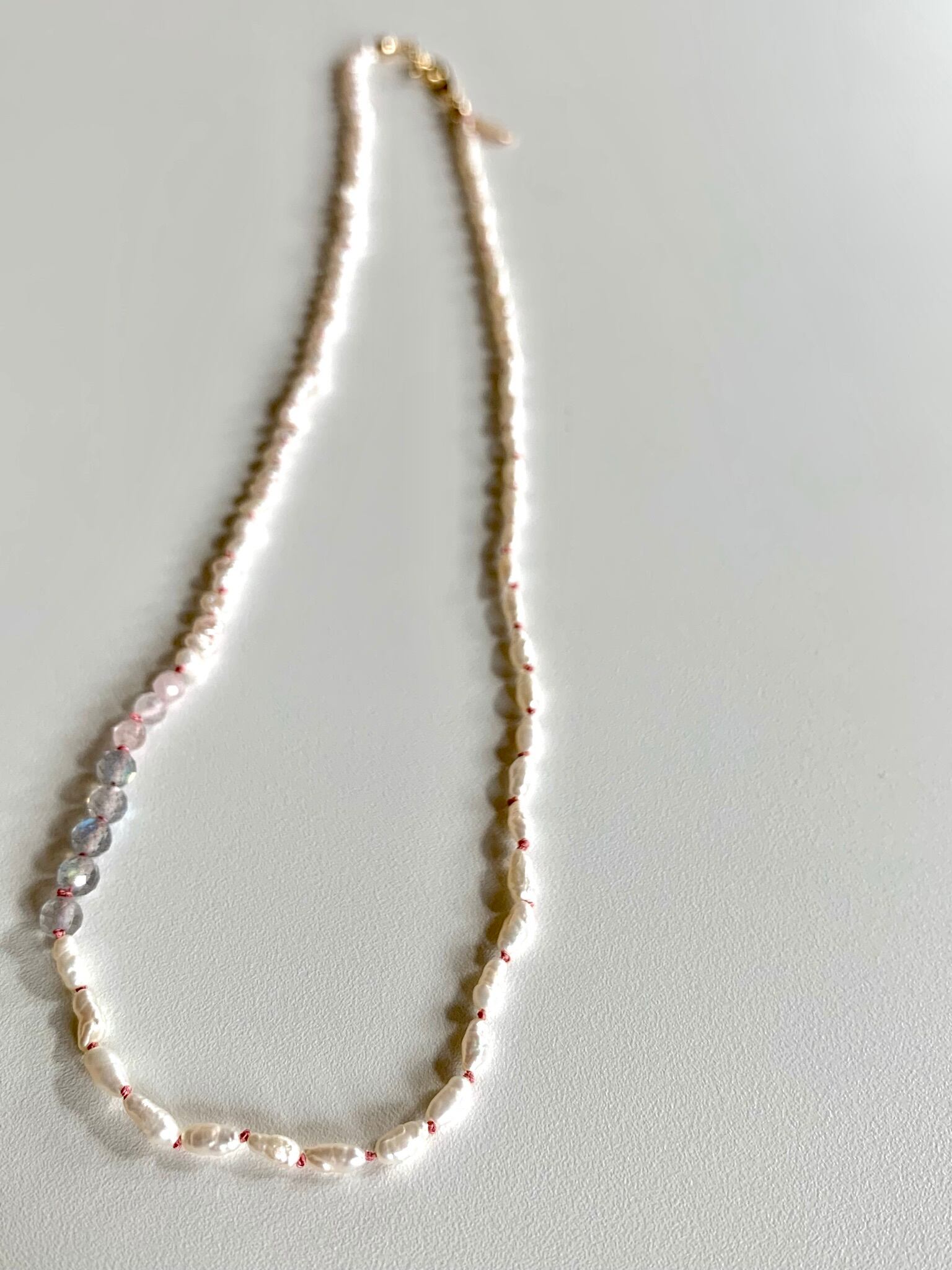 小粒の淡水パールとラブラドライトとベルリを結びました。