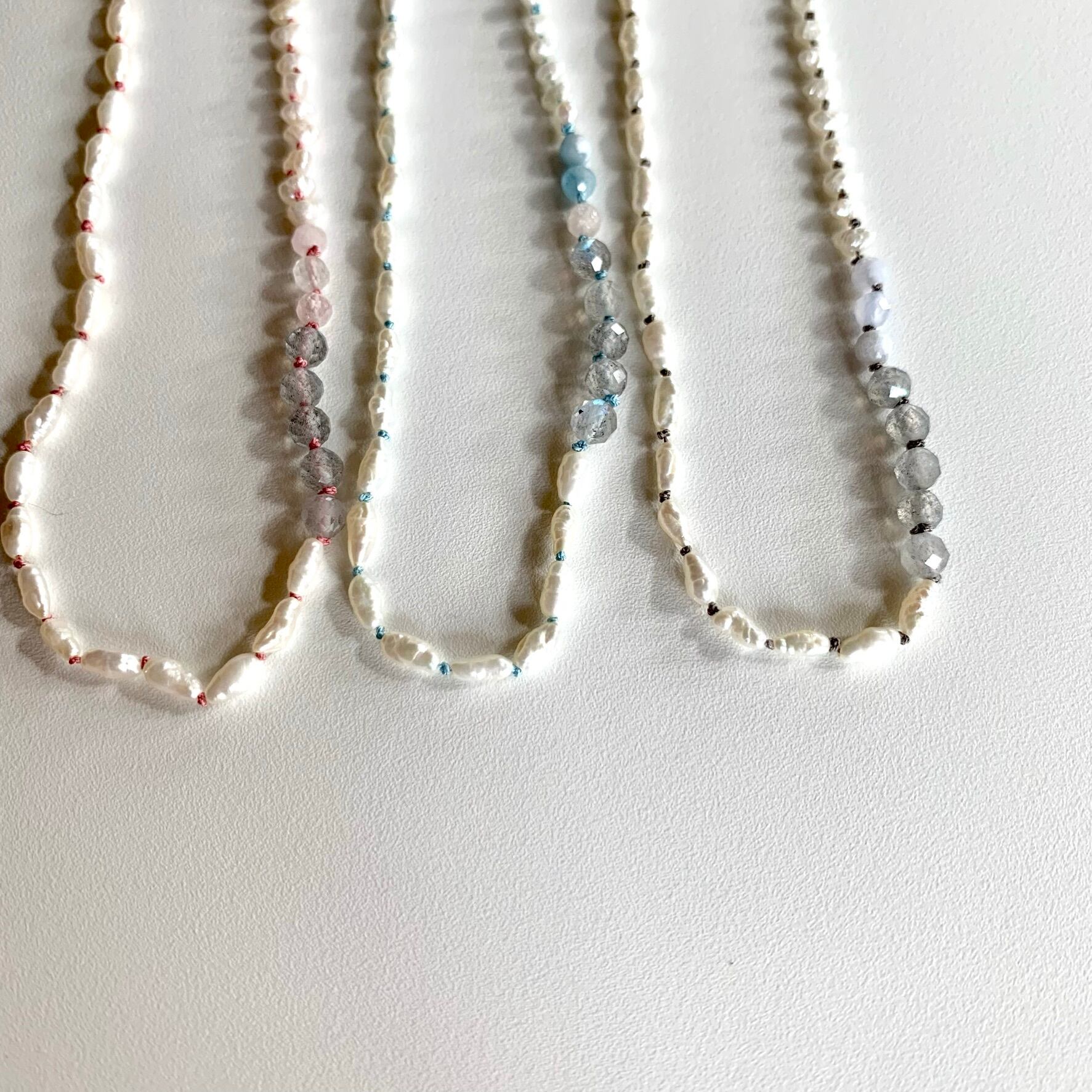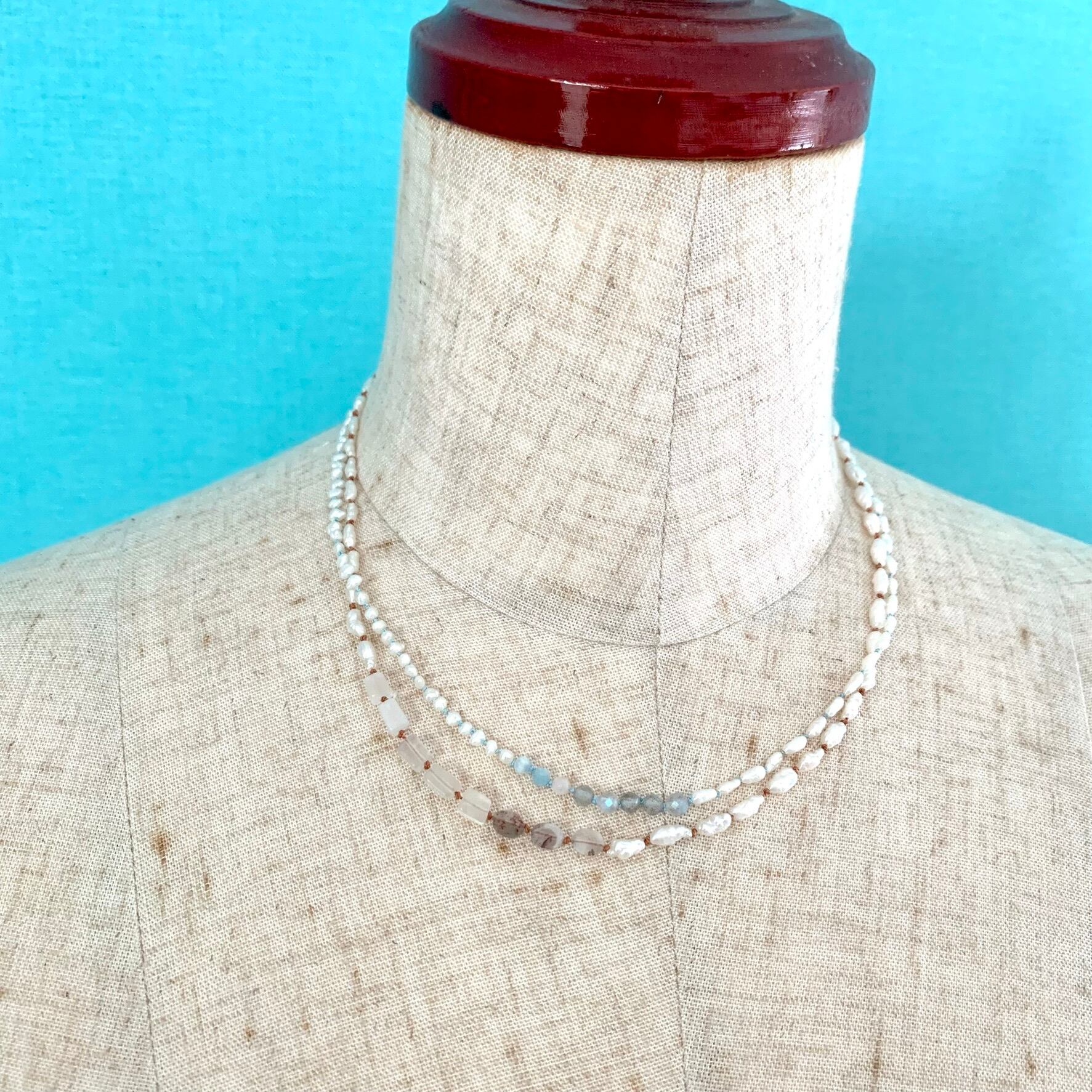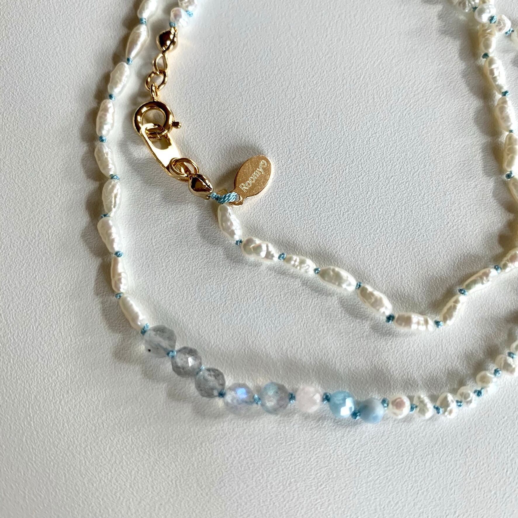 淡水パールのオールノットネックレス 水色
