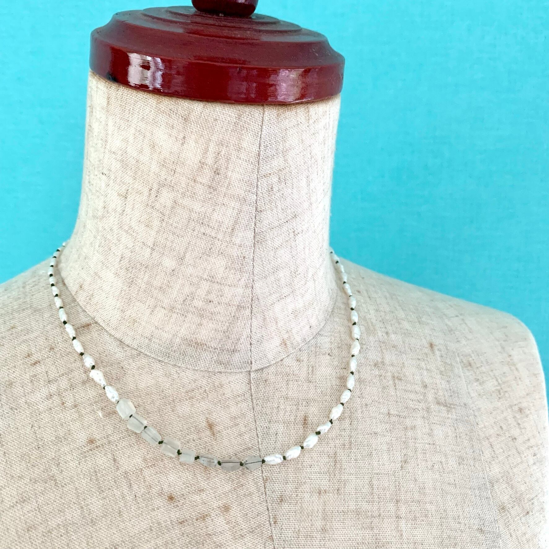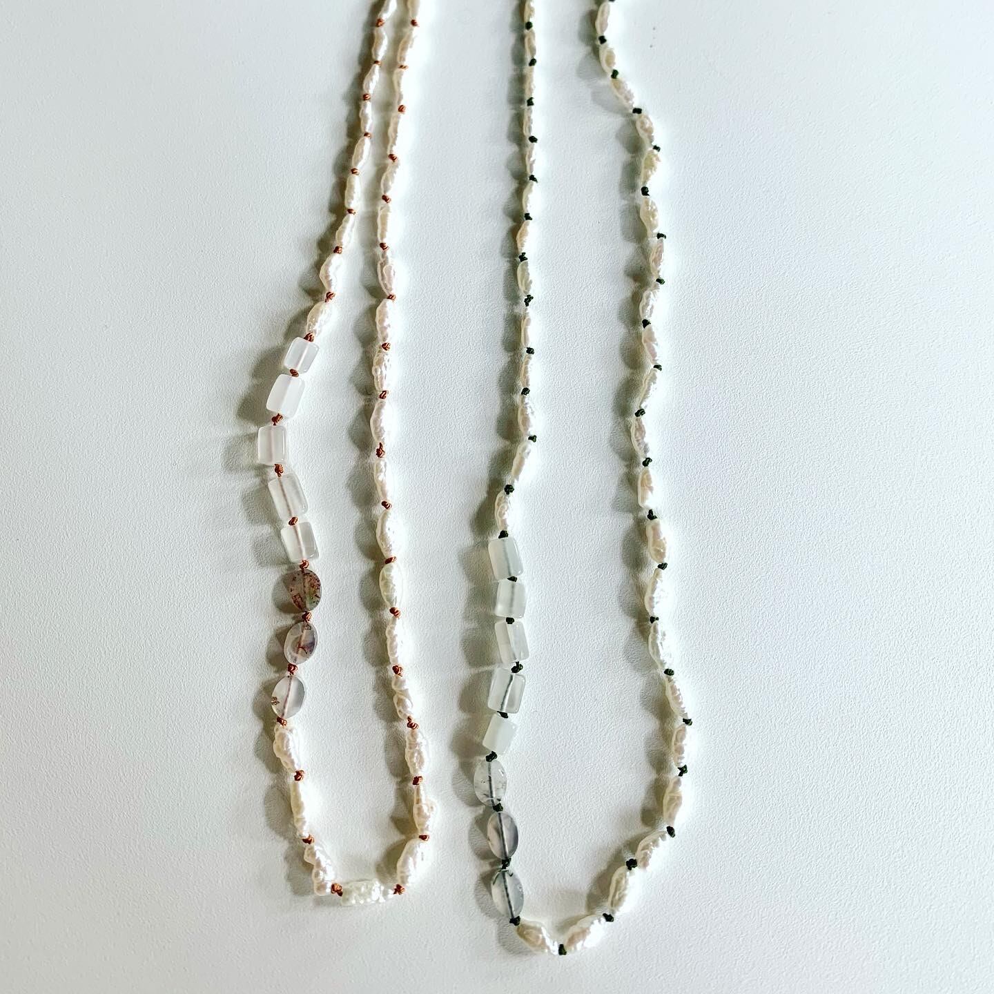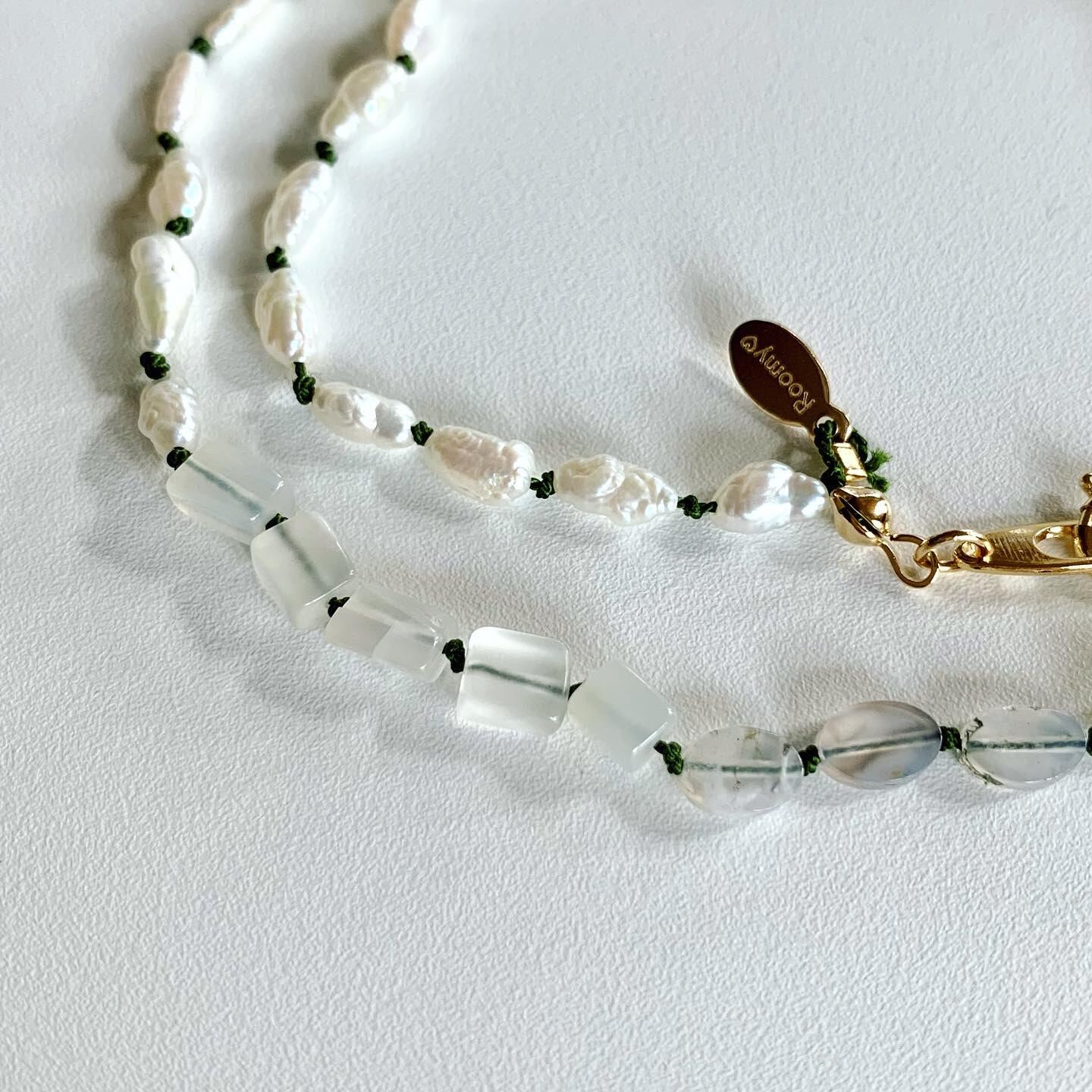 小粒の淡水パールとムーンストーンとインディアンアゲートを結びました。