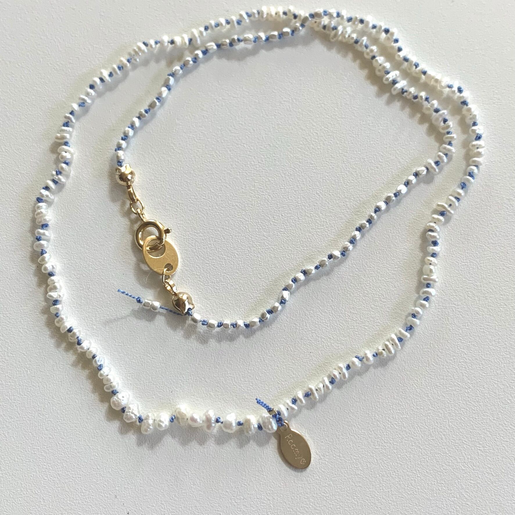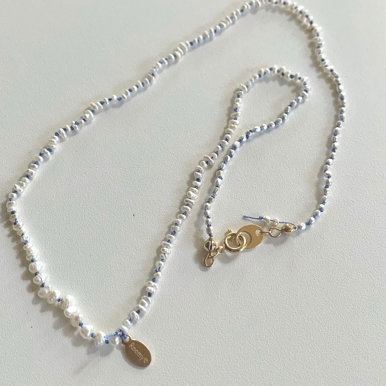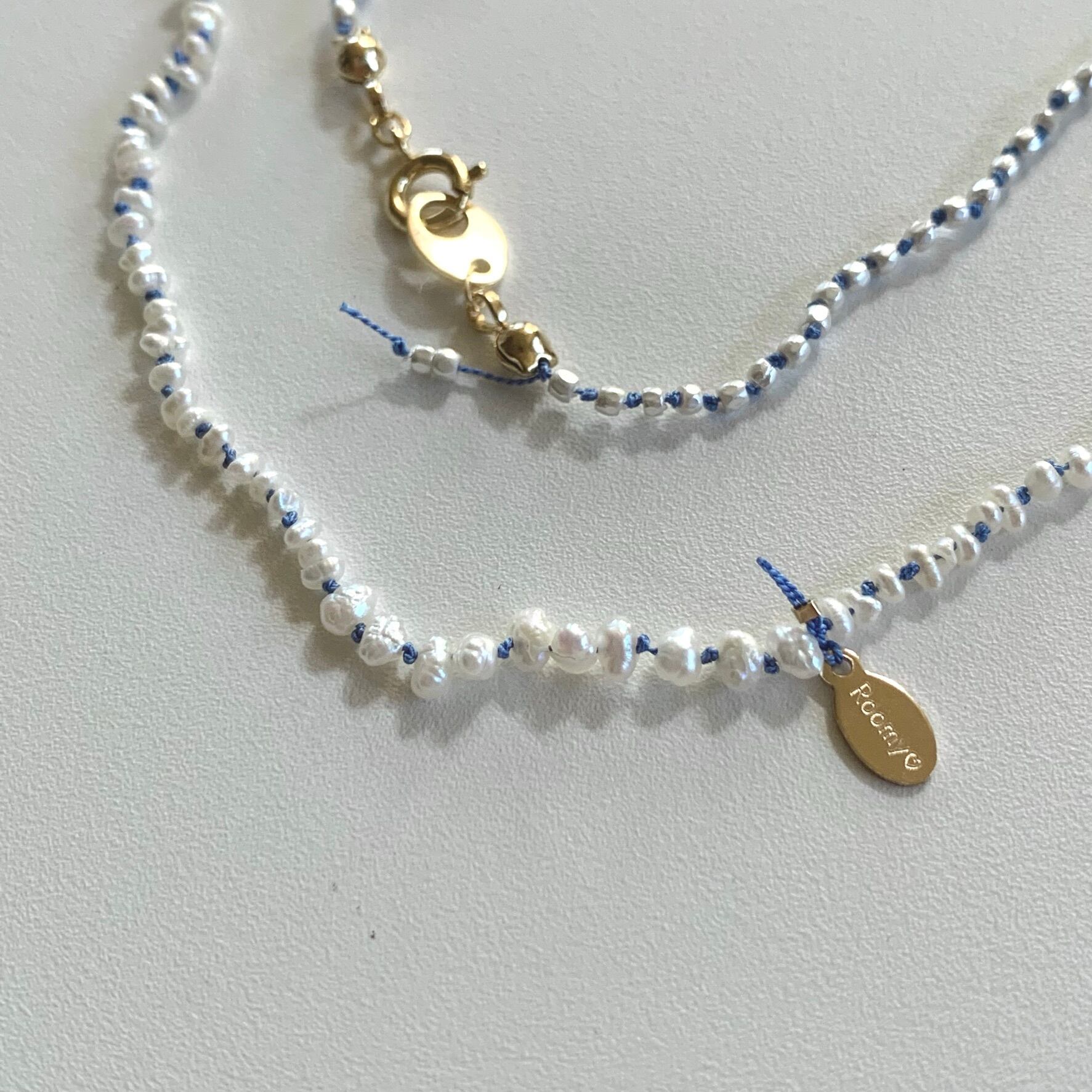 淡水パールのオールノットネックレス ブルー