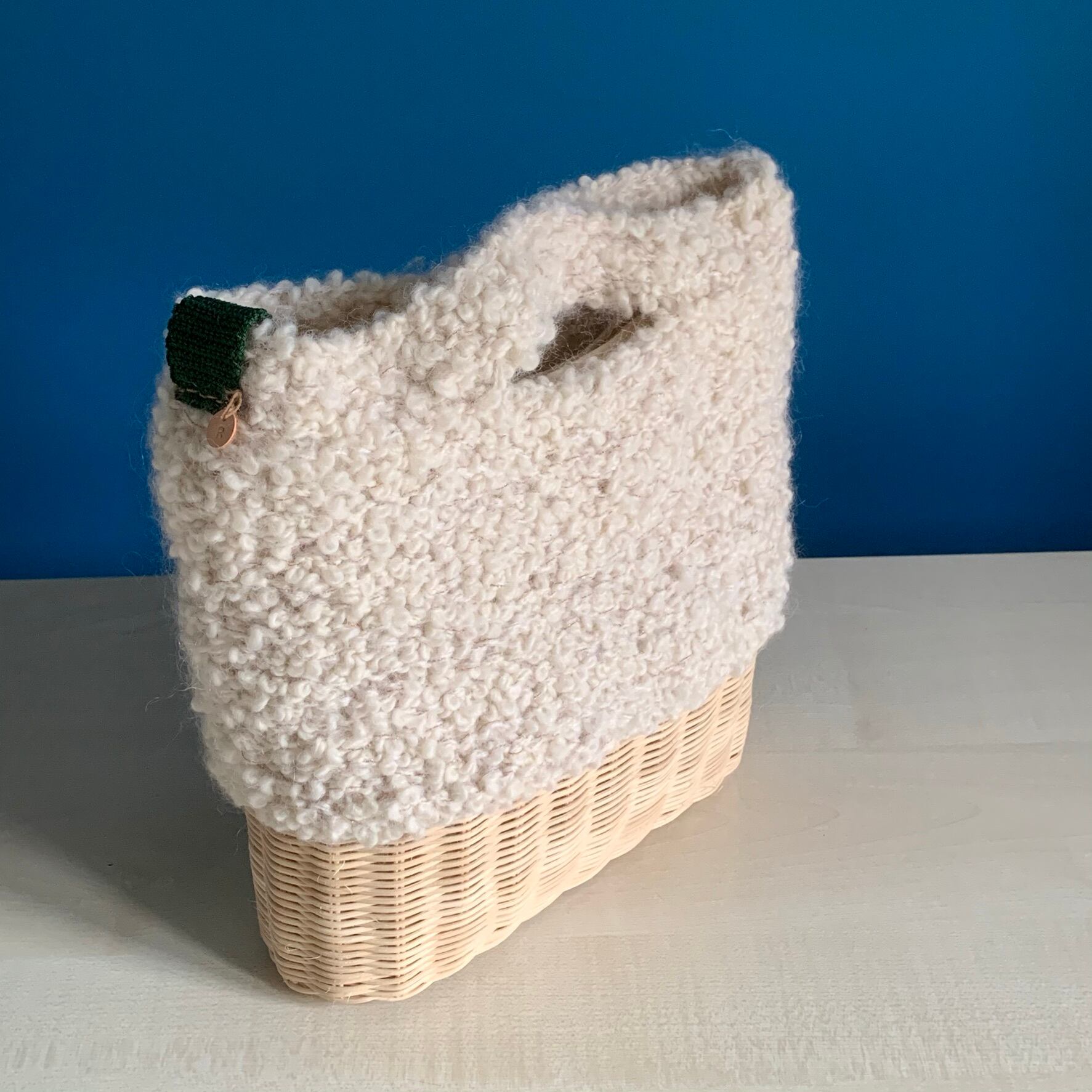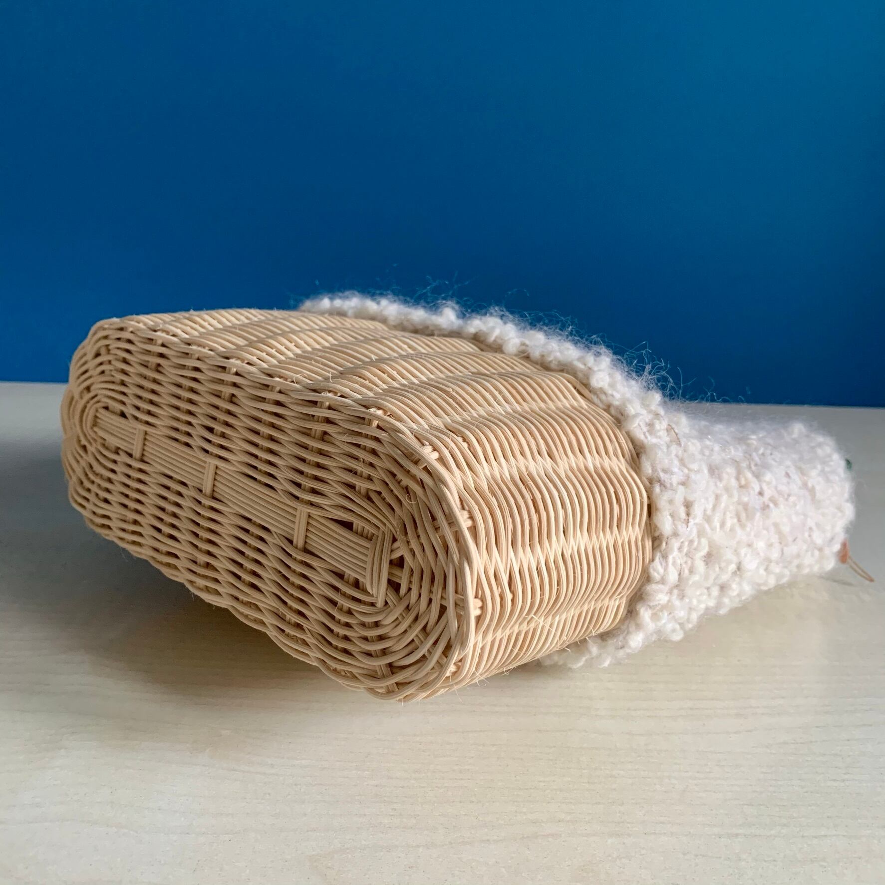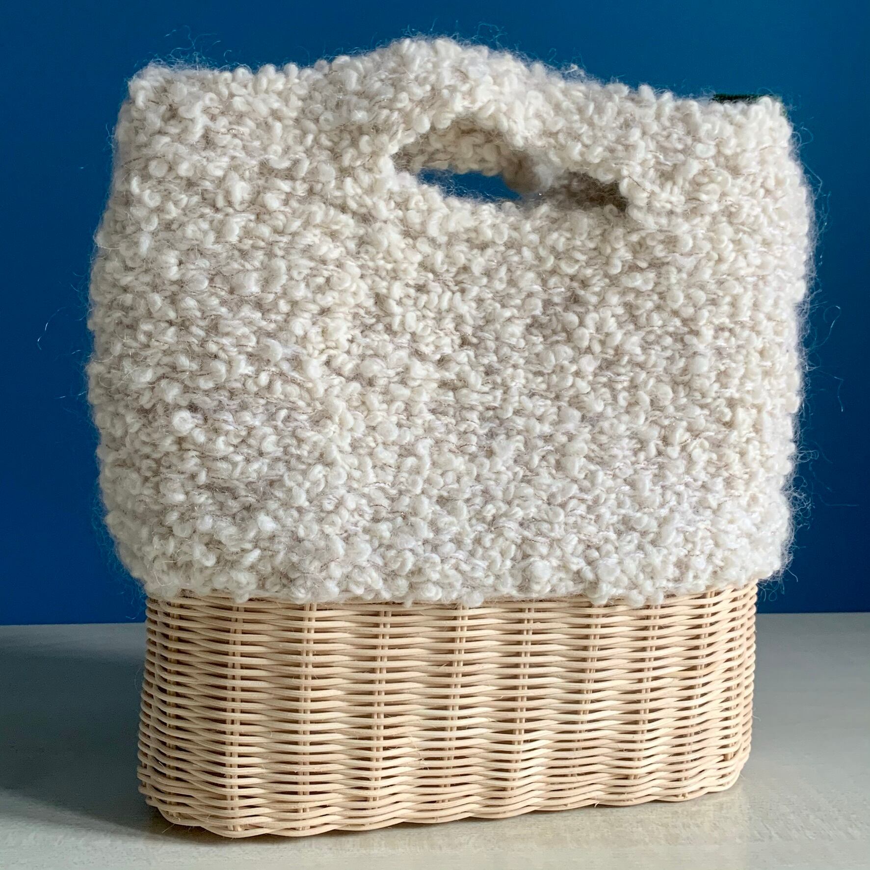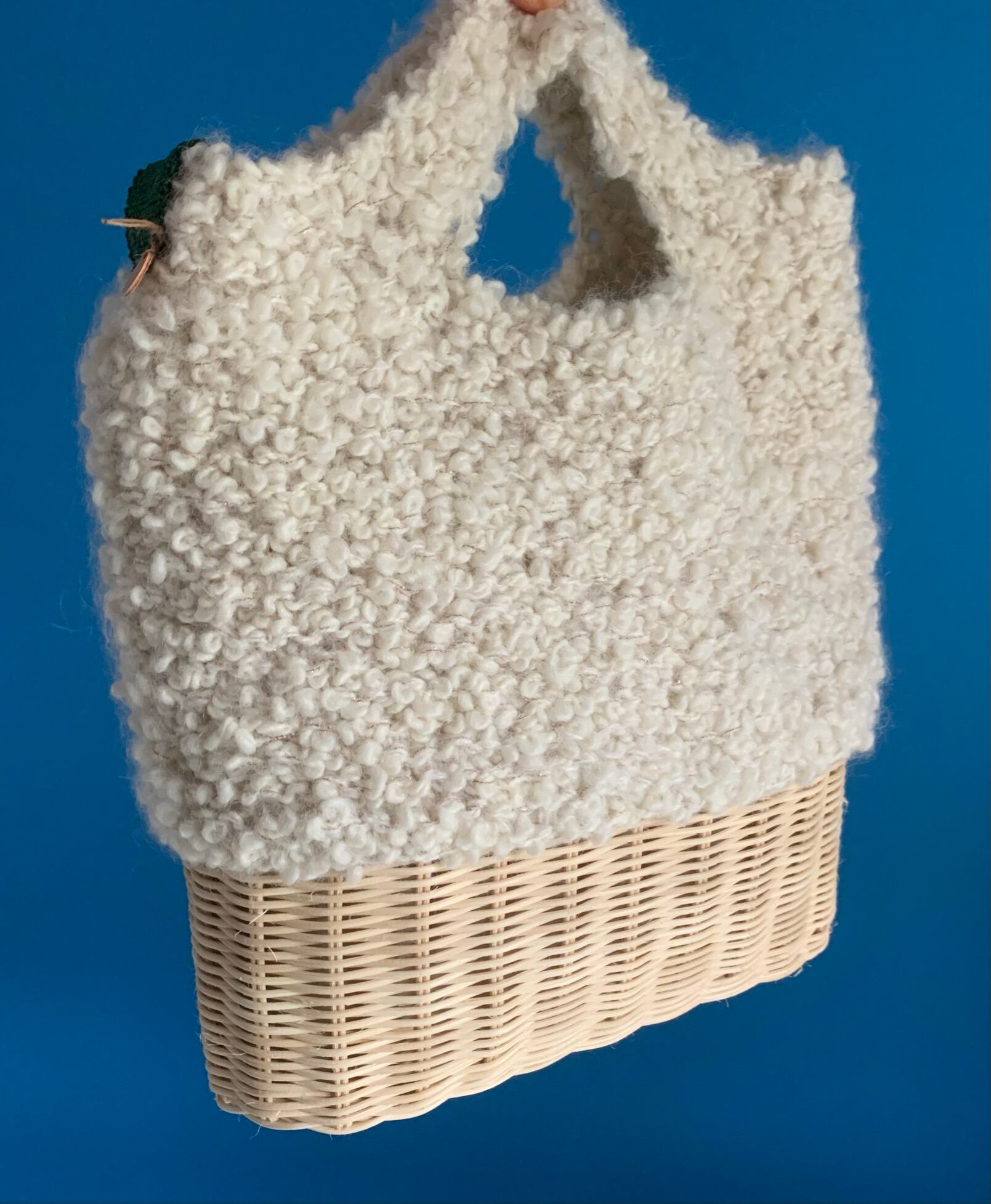 籐と毛糸を使った手編みのバッグです。