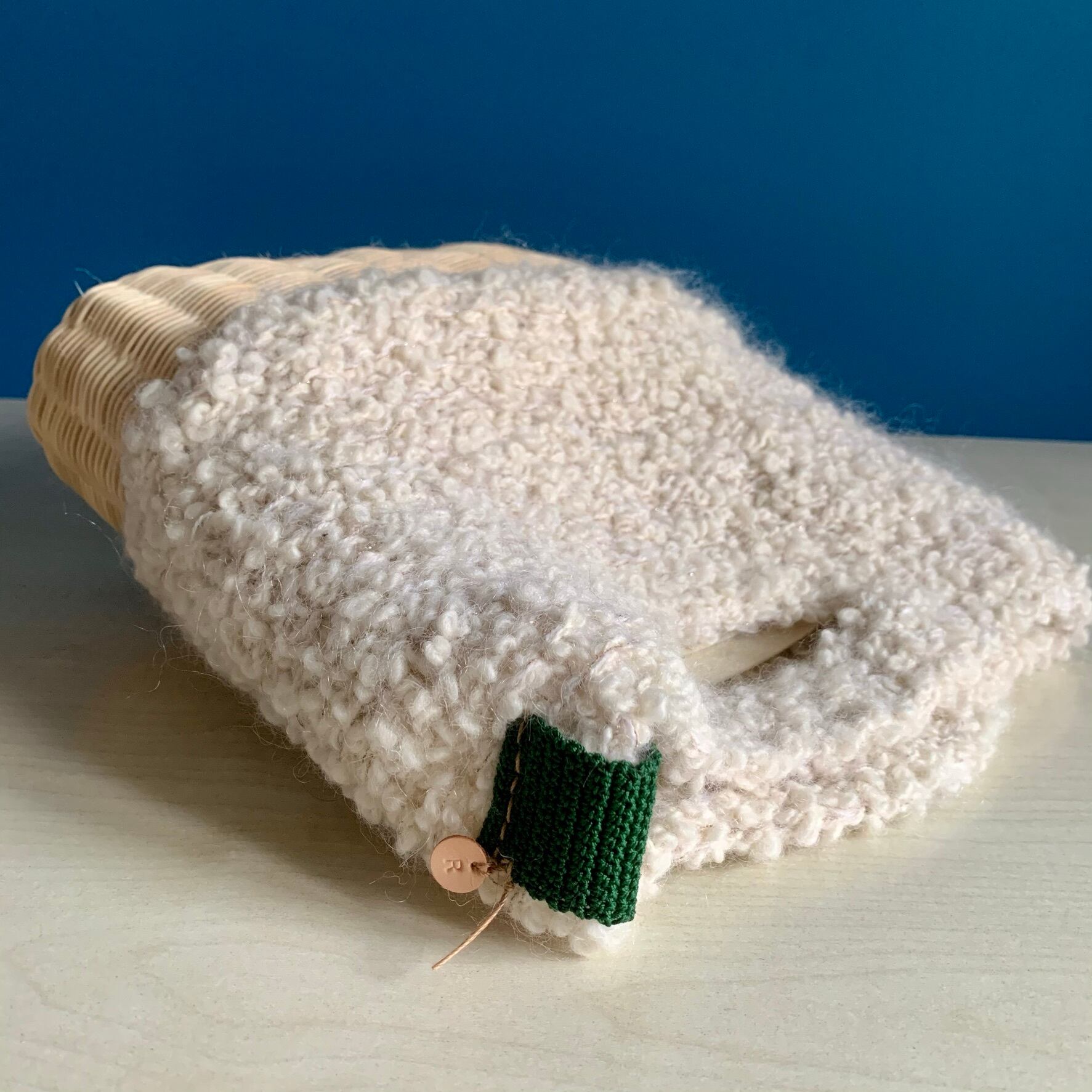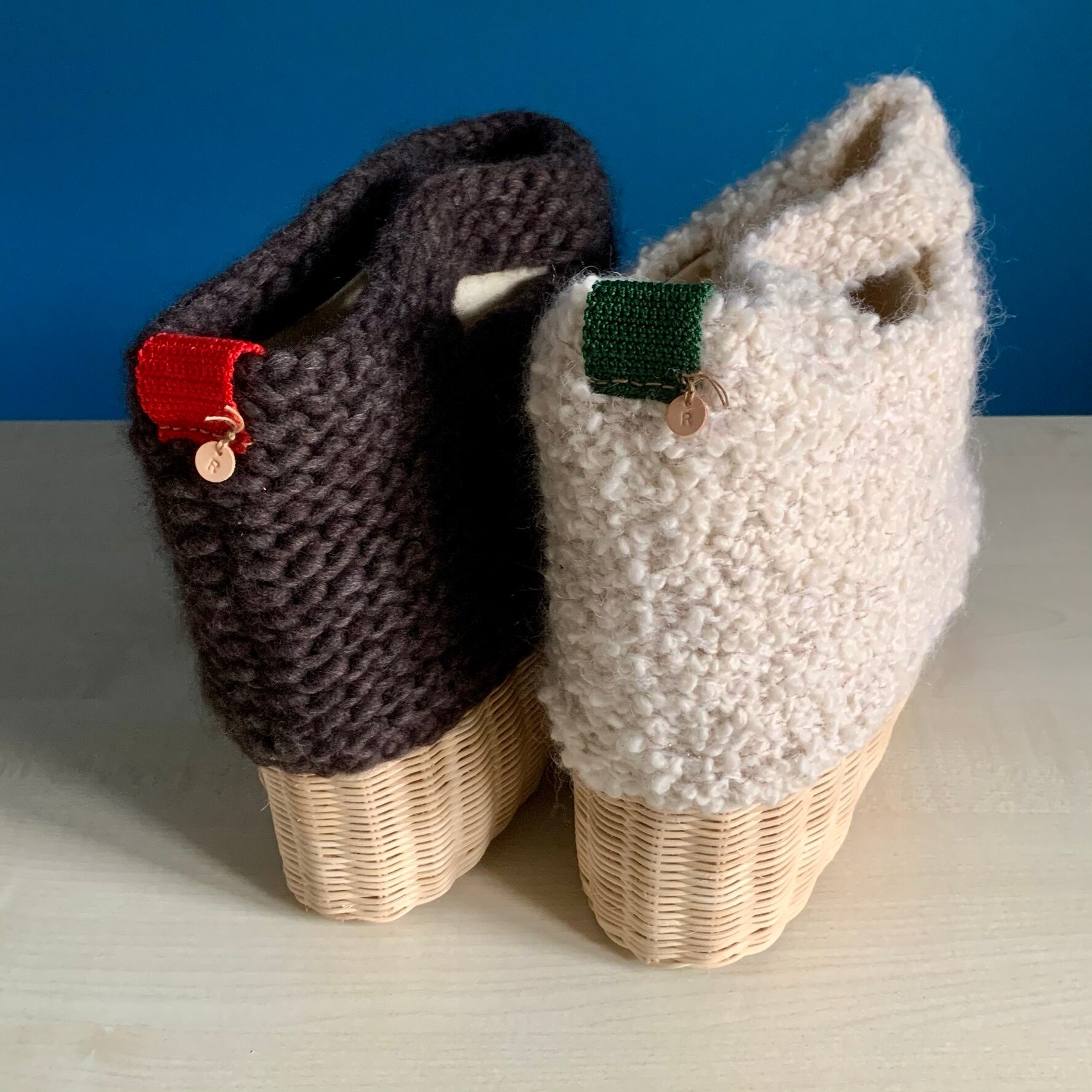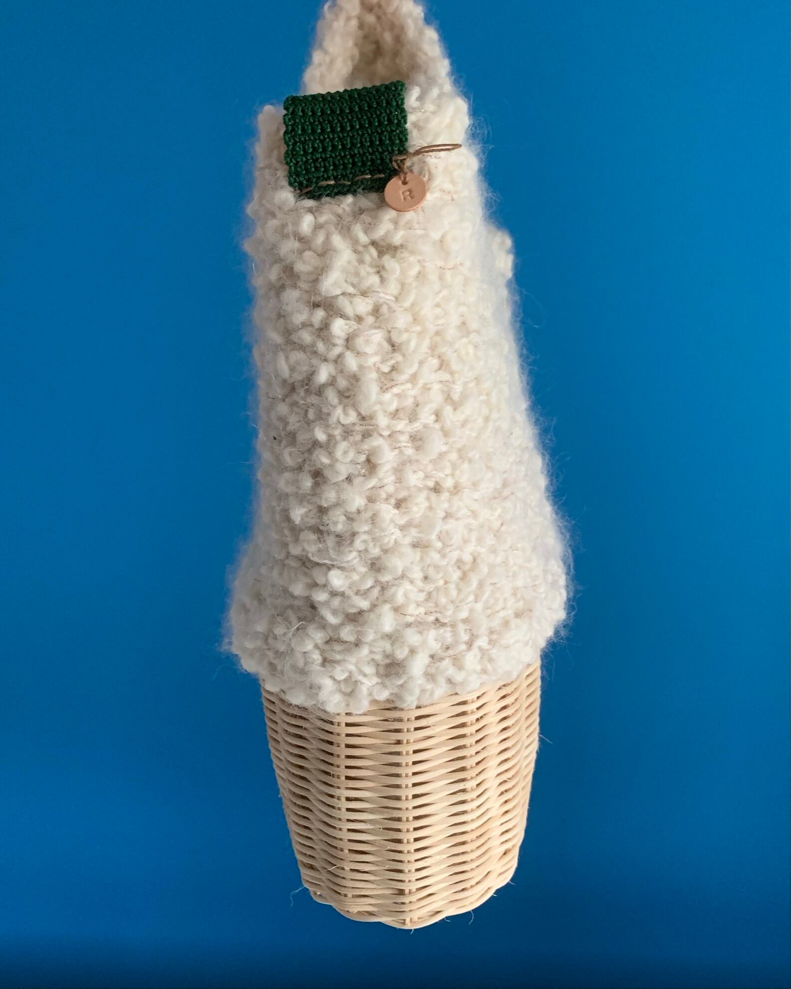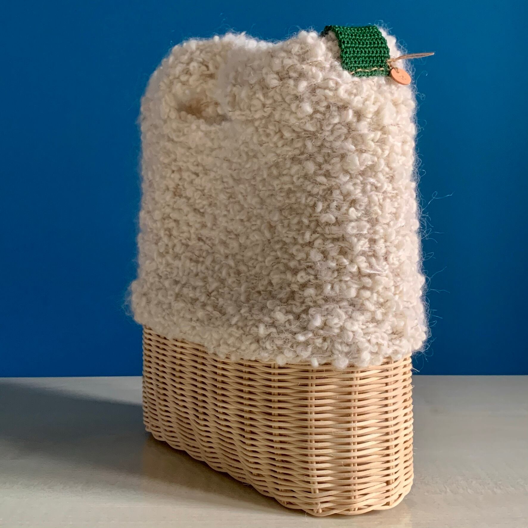 籐と毛糸を使った手編みのバッグです。